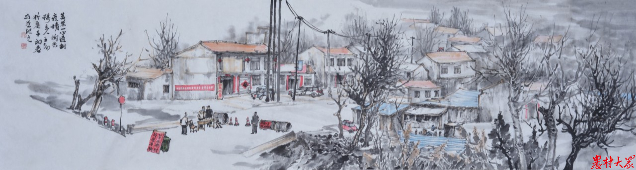 王剑国画作品《大街小巷为何空,只缘村落防疫情》