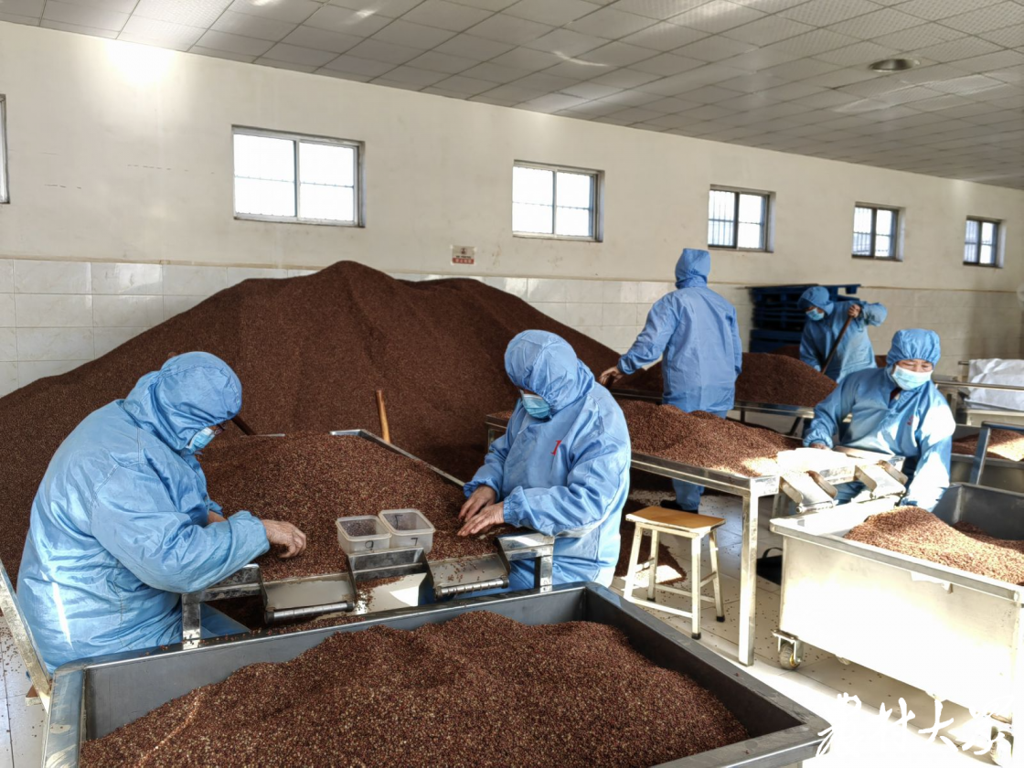 “咱的花椒不但在国内卖得好,在国际上也很吃香。走,看看我们的花椒生产流水线。”说话的是吴连军的儿子吴涛。花椒产业越做越大,吴涛从部队转业后,也被吴连军招回了家。