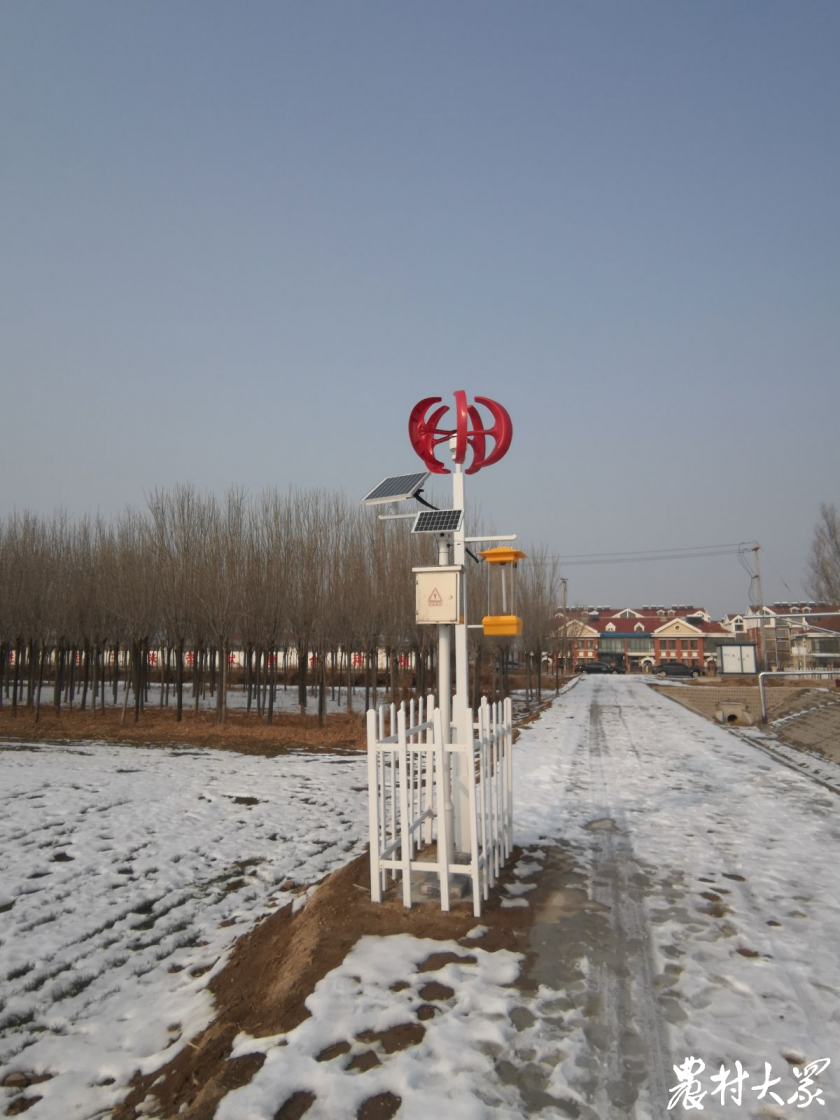 麦田配套设施齐全,灌有渠,排有沟,田边还有风、光互补的农田监测仪。